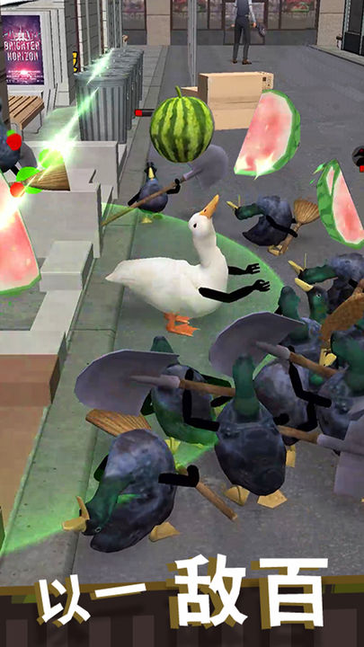 想象一下,如果鸭子突然进化出了人类的手臂会是什么画风?这款魔性十足的休闲游戏就把这个脑洞变成了现实。游戏中那些长着胳膊的鸭子简直太逗了,它们举着扫把、砖头甚至西瓜当武器,和人类开的绝绝子鸭脖店、啃得鸭全家桶展开大乱斗。滑动屏幕就能操控鸭子走位,松开手指自动攻击,操作特别简单。战斗过程中还会随机触发各种增益效果,想体验这场搞笑对决的话快来下载试试吧!