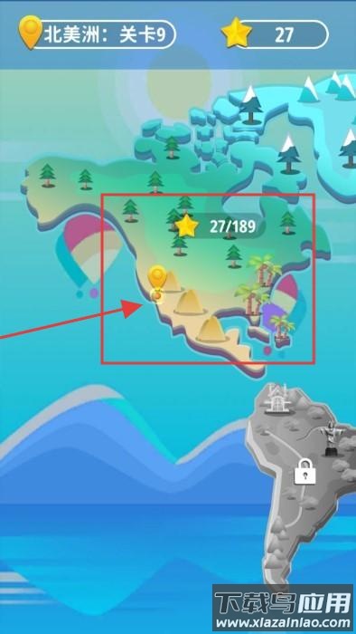 1、打开应用,在【北美洲:关卡9】地图,选对应区域进入消除关卡。