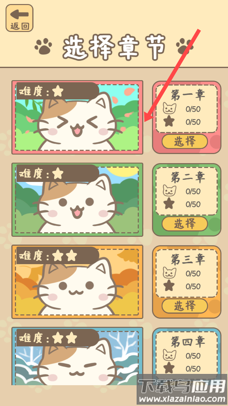 2、选择想要挑战的章节和具体关卡;