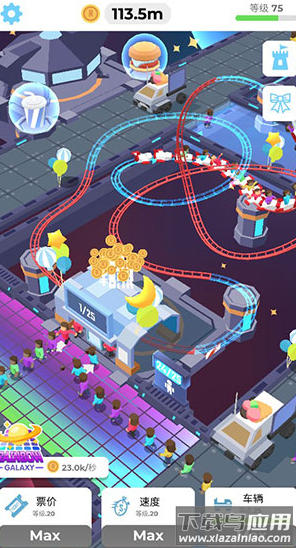 在闲置过山车这款充满乐趣的模拟经营手游中,你将化身游乐园管理者,亲手打造惊险刺激的过山车王国。通过解锁不同主题的轨道、升级设施设备,吸引大批游客前来体验;看着飞驰的列车划过天际,听着游客的尖叫声与欢笑声,成就感油然而生。游戏采用清新明快的卡通风格,搭配逼真的物理引擎,让每一次俯冲与翻转都充满真实感;赚取的门票收入还能用于扩建场地,设计更复杂的轨道组合。喜欢经营模拟与创意建造的玩家,快来体验这份独特的快乐吧。