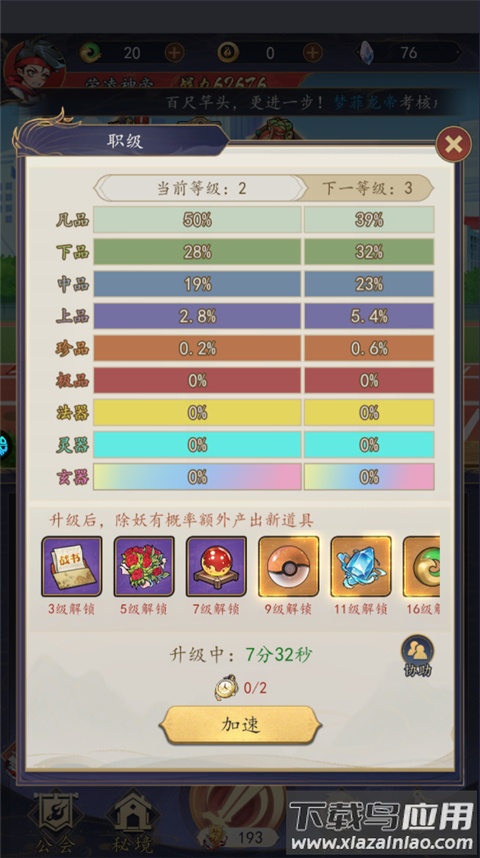 4、职级晋升需通过天道试炼,每阶解锁新的装备词缀库;