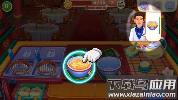 3、将煮好的面条拖到碗中,再端给顾客即可获得金币;