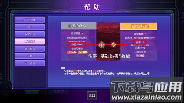 游戏内器官分为圆形驱动核与菱形功能体两大类别,必须将两者正确连接才能激活技能效果。例如火焰核心需搭配喷射器,毒囊要连接扩散腺体。每个器官都标注有神经突触兼容性提示,匹配的接口会显示绿色高光,错误连接则无法触发特殊效果。