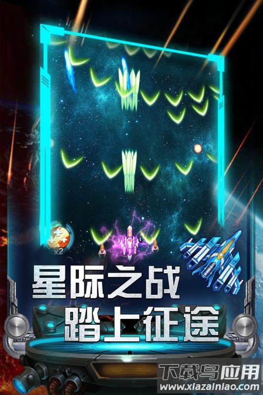 1、通过虚拟摇杆控制战机移动,系统会自动进行射击,注意收集能量道具;