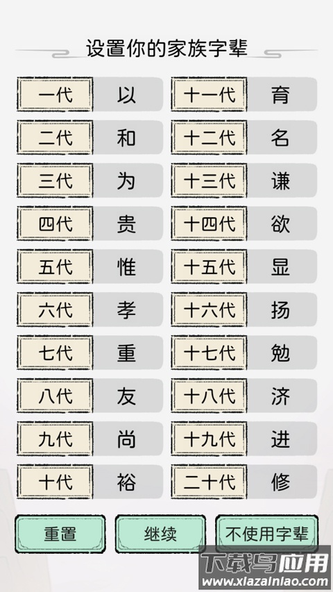 1、首次进入需创建家主角色,从二十代字辈中选定家族传承序列;
