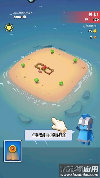1、开局阶段点击海面部署战船,注意观察右侧物资获取进度条;