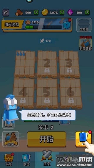 3、通关后优先领取宝箱奖励,通过三合一合成规则提升兵种等级;主界面抽卡功能可获取稀有单位;