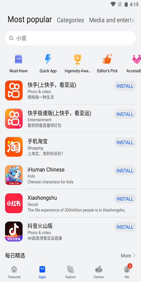 3. 多维应用榜单:设有下载排行、评分榜单、付费排行、新锐应用等多个实时更新的排行榜单,方便发现优质应用。