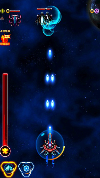 基础操作采用极简设计:战机自动发射子弹,手指滑动即可精准走位;击落敌机掉落的水晶可恢复微量生命值,但要注意保护机身核心发光点;暴走状态下攻击力翻倍,击杀得分奖励提升200%;终极武器"高能爆弹"能清屏并触发短暂无敌;每局最多复活3次,贵族玩家可额外增加1次复活机会;通过拾取不同道具可激活武器升级、护盾生成等特殊效果,武器最高可强化至4级。