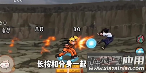 3、二技能螺旋丸,分为短按和长按两种释放方式,短按能快速释放,长按会召唤分身一同攻击,伤害会更高,但是冷却更长。
