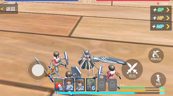 5、对战中使用虚拟摇杆移动,右侧按键控制攻击与技能释放;