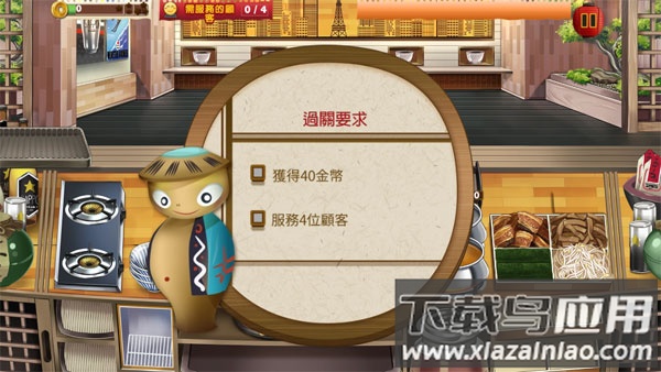 1、游戏开始前会显示关卡要求,明确需要赚取的金币数量和服务人数;