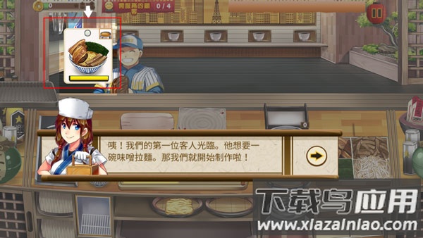 2、根据顾客头顶的气泡提示,选择对应食材进行搭配;注意面条的软硬程度会影响评分;