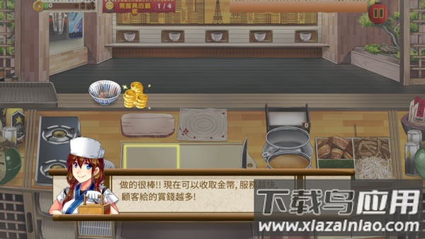 3、顾客用餐完毕后会留下金币,及时收取才能计入总分;
