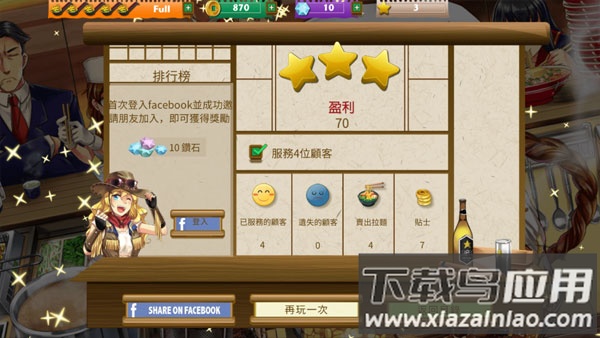 5、通关后可以选择重玩提升评分,或进入下一关卡;三颗星评价能解锁隐藏食谱;