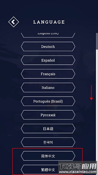 3、在语言列表中选择"简体中文",退出设置后立即生效;