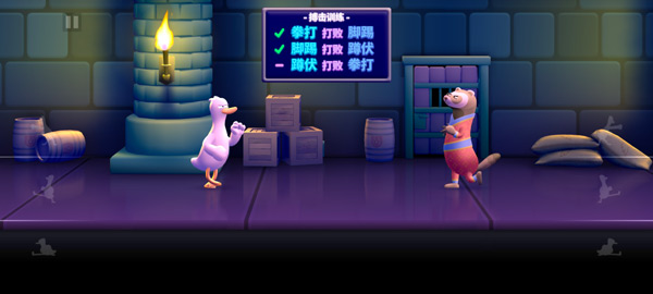这款名为鸭鸭揍的魔性休闲动作手游,英文名Punch Kick Duck,将玩家带入一场充满黑色幽默的逃亡之旅。故事从地牢开始,邪恶的泰格爵将你囚禁在塔底,唯一的出路就是击败层层守卫的动物爪牙。游戏采用类似石头剪刀布的简单机制,拳打、脚踢、蹲伏三种动作相互克制,配合精准时机就能打出华丽连招。卡通风格的动物角色搭配流畅打击感,每场战斗都能体验将对手打飞的爽快感;多种可解锁角色和皮肤让冒险过程充满新鲜感,横竖屏自由切换的设计更是方便随时来场痛快对决。喜欢这类快节奏格斗游戏的玩家不妨下载试试。