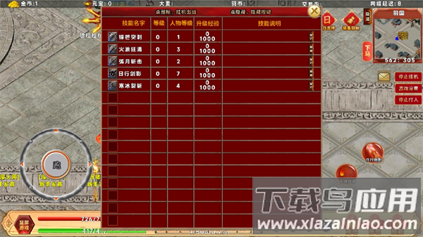 3、挂机前需在技能面板配置自动释放技能,建议搭配群体伤害和控制技能;