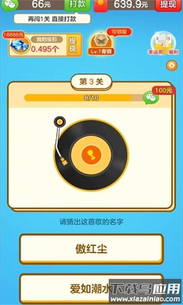 如果你热爱音乐又喜欢挑战,这款猜歌游戏绝对值得一试。它将音乐娱乐与互动玩法完美结合,海量曲库持续更新,从流行金曲到网络热歌应有尽有;游戏设计了148个趣味关卡,每关都能通过猜歌赢取金币奖励;独特的限时答题机制让过程更刺激,智能难度系统则让新手老手都能找到乐趣;更有实时排行榜和组队PK功能,让你和好友一较高下。喜欢就快来下载体验吧!