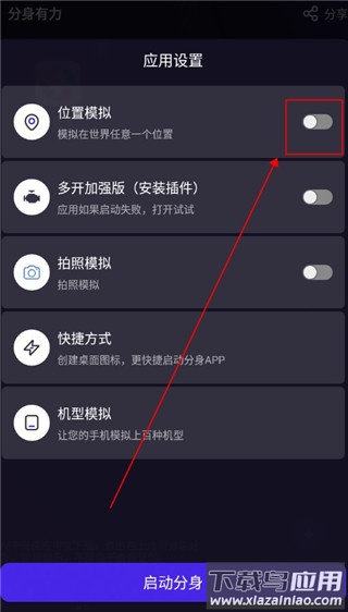2. 开启位置模拟功能后点击启动分身,即可实现虚拟定位;该功能适用于需要改变地理位置信息的各类场景。