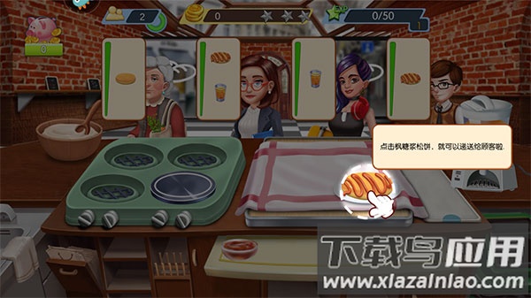 这款餐厅经营游戏将带给你真实的烹饪体验,需要根据顾客需求快速制作对应菜品;通过完成每日任务获取稀有装饰,逐步扩大餐厅规模;游戏包含多阶段难度挑战,从街边小店到米其林餐厅,见证你的经营成长之路;