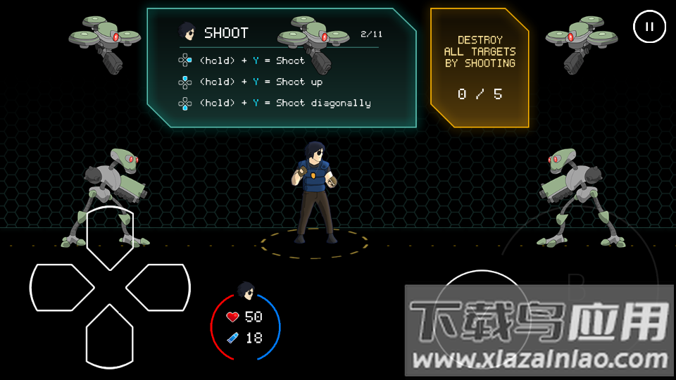 3、根据屏幕提示(如+Y=Shoot)操控角色射击摧毁所有目标完成教程任务。