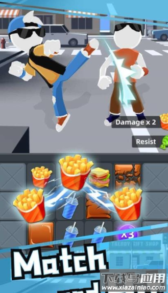 街头打架是一款将消除玩法与格斗元素巧妙结合的休闲手游,玩家通过滑动屏幕完成消除操作来积攒能量,触发炫酷的格斗招式击败对手。游戏采用明亮的卡通画风,搭配夸张的橡胶人角色设计,魔性的动作特效让战斗过程充满趣味性。每个关卡都需要合理规划消除策略,才能释放强力技能快速解决敌人;随着关卡推进,还会解锁更多角色和战斗风格,喜欢这类创意玩法的朋友快来下载体验吧。