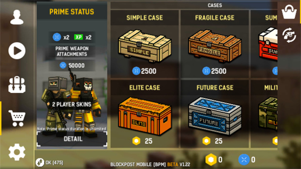 碉堡射击2025最新版是一款充满激情的多人在线射击游戏,采用独特的像素方块风格打造,角色设计以可爱的方块脸为主角,搭配平面2D战斗视角,带来别具一格的视觉体验。游戏提供丰富多样的武器系统,从经典的AK到火力强劲的转管机枪,再到精准的狙击枪,满足不同玩家的战斗需求。支持线上组队功能,与好友并肩作战挑战多人对战模式,通过完成任务获取丰厚奖励,快速提升角色战斗力。操作简单易上手,左侧虚拟摇杆控制移动,右侧集中了射击、跳跃、投掷手雷等关键功能按键,流畅的操控手感让玩家轻松打出精彩操作,喜欢射击游戏的朋友快来下载体验。