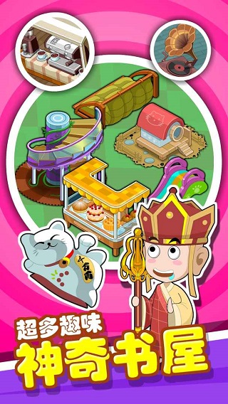 独创的时空穿越经营玩法,每个季度更新特殊时代主题;超过200本经典名著改编成趣味小故事;隐藏的猫咪互动系统,撸猫能提升员工效率;不定期开启的限时寻宝活动,收集古董装饰店铺。