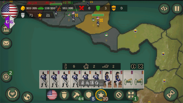 初次进入游戏会看到三个主要选项:开始新游戏、读取存档和创建存档。建议新手选择创建存档开启旅程;接着从多张精细绘制的地图中挑选心仪战场;在regions界面选定想要统治的国家后,点击play as按钮即可正式接管政权;游戏过程中可以通过修改器调整语言设置。