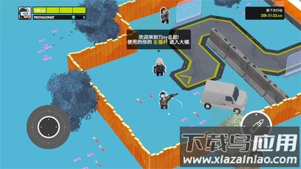 1、首次进入游戏会触发新手引导,左侧虚拟摇杆控制角色移动;