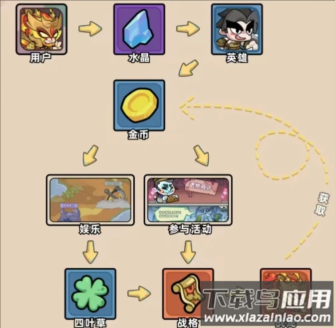 1、基础玩法:初始会获得水晶石作为启动资源,消耗40水晶可激活英雄卡,每张卡持续30天周期,每日稳定产出1金币(约价值2米),累计可获120米收益;