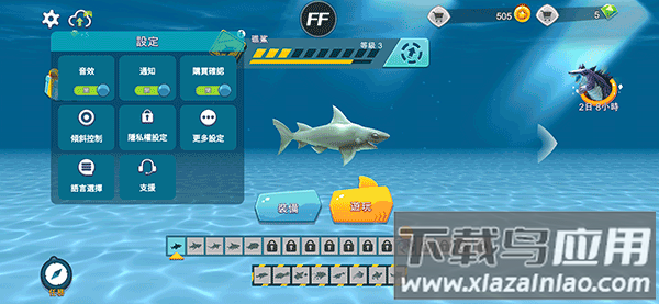 1、生存法则:保持持续进食,饥饿值过低会导致鲨鱼死亡;