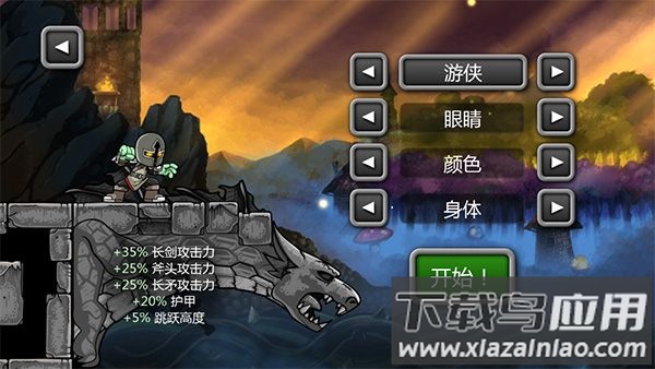 1、游侠:长剑攻击力+35%,斧头攻击力+25%,长矛攻击力+25%,护甲+20%,跳跃高度+5%;