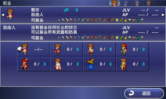 针对移动端优化的高清2D点阵画面;经典转职系统包含战士、白魔导士等8大职业;五章节史诗剧情展现光暗之争;可切换原版与重编版游戏配乐;融合技系统需要特定职业组合触发。