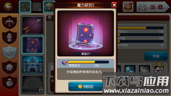 三、资源分配优先级:金币优先升级箭塔攻击力,宝石用于强化大火球与多重箭,魔法书侧重提升火系技能等级;