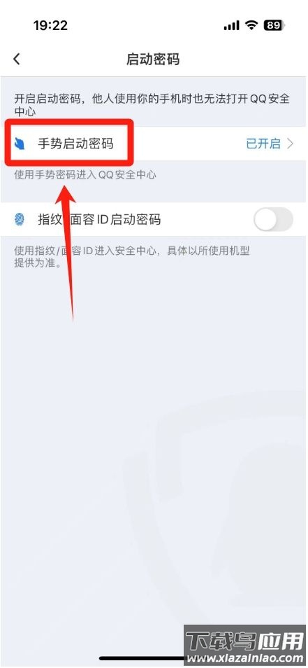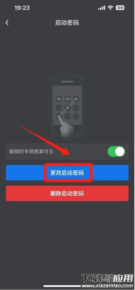 3、进入启动密码页面,点击【手势启动密码】。
