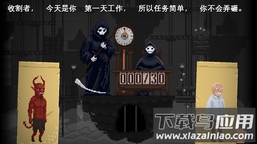 在快节奏的现代生活中,寻找一款能放松心情又充满挑战的游戏并不容易。安息死亡以独特的像素风格和趣味玩法脱颖而出,玩家将化身死神麾下的灵魂收割者,通过简单却富有策略性的分类任务开启冒险。每天面对形形色色的顾客,你需要快速判断他们身上的特征标志,将其送往天堂、地狱或炼狱。随着游戏进程,隐藏的犄角、带血的凶器等迷惑元素会不断考验你的观察力;突如其来的事故和每周新事件更让游戏充满变数。这款融合休闲与策略的作品,用黑色幽默的方式带来别样体验,喜欢的就来下载试试吧。
