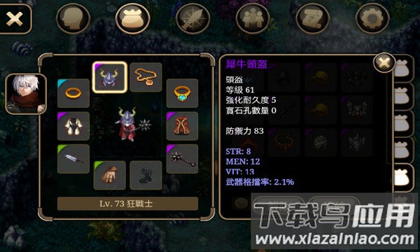 2. 61级狼人掉落犀牛战盔,这件重甲头盔能显著提升物理防御;