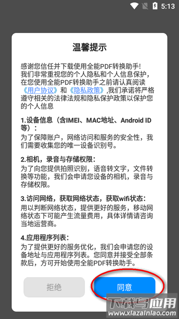 1.首次启动需阅读并同意用户协议及隐私条款;