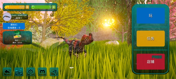 1、游戏主界面选择"玩"按钮开启冒险,新手建议先从食草龙开始熟悉操作;