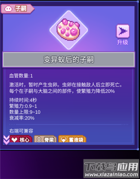 蚁后子嗣配合翅模块可同时存在20个作战单位,每个子嗣都能独立触发器官链,形成蜂群战术效应。