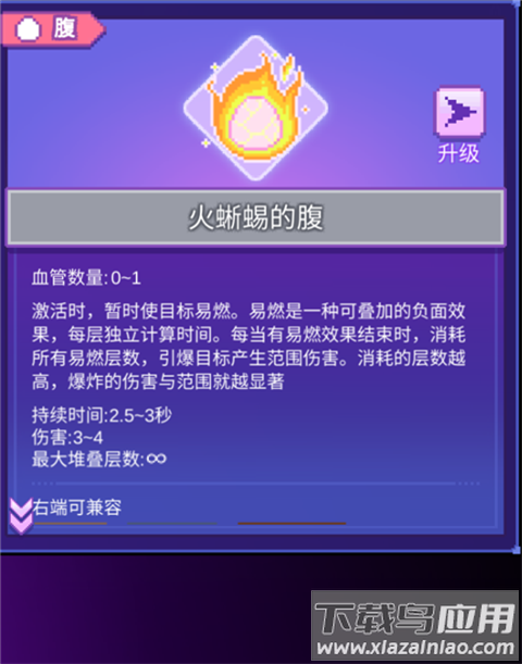 腹类器官造成的燃烧/冰冻效果可多层叠加,血珊瑚腹叠加层数后伤害呈平方增长,火蜥蜴腹能产生连锁爆炸效果。
