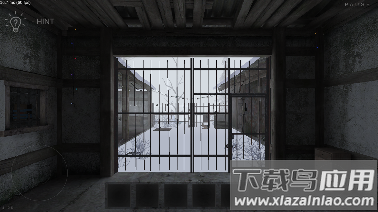 4、游戏从铁笼中苏醒开始,左上角灯泡图标可获取实时提示;