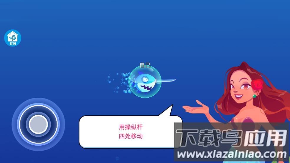 2、左手滑动控制移动方向,注意避开红色标记的敌对鱼类;