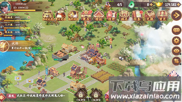 3、联机模式可拜访好友城镇,交易特产或协助抵御山贼袭击;排行榜展示各服最高楼宇设计。