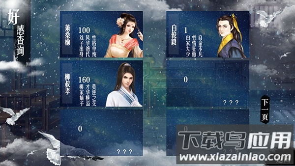 3、属性面板实时显示科举学识、官场声望等12项数值,联姻对象好感度需达到80才可提亲;