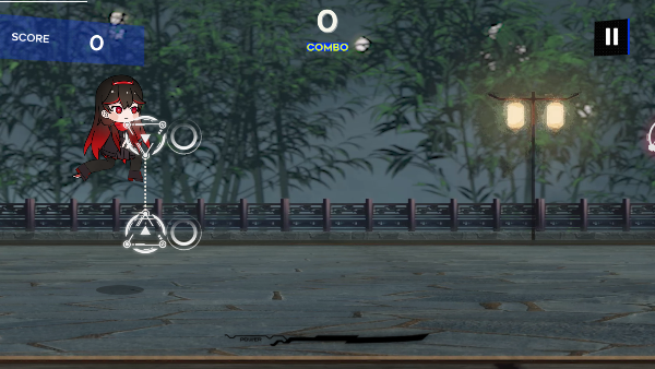 2、圆形按键控制角色跳跃,可斩落空中音符或消灭飞行敌人;