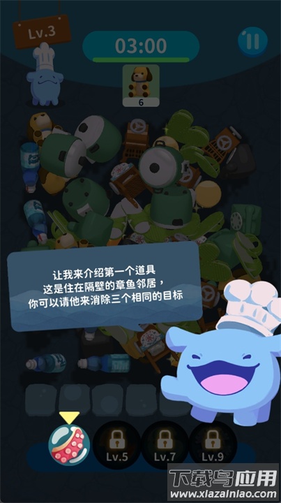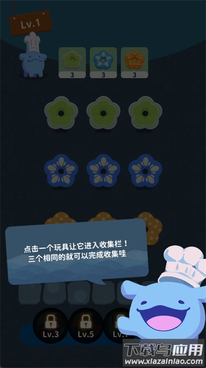 2、经典消除:点击收集三个相同食材完成关卡目标;