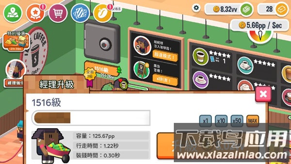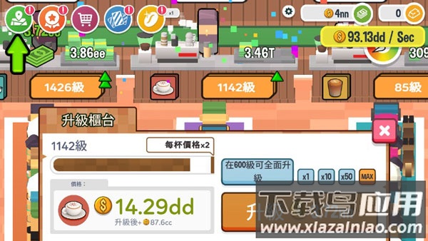 初始需要配置基础咖啡柜台,通过升级可提升单杯售价;当柜台达到特定等级会触发品质飞跃,显著提升客流量。